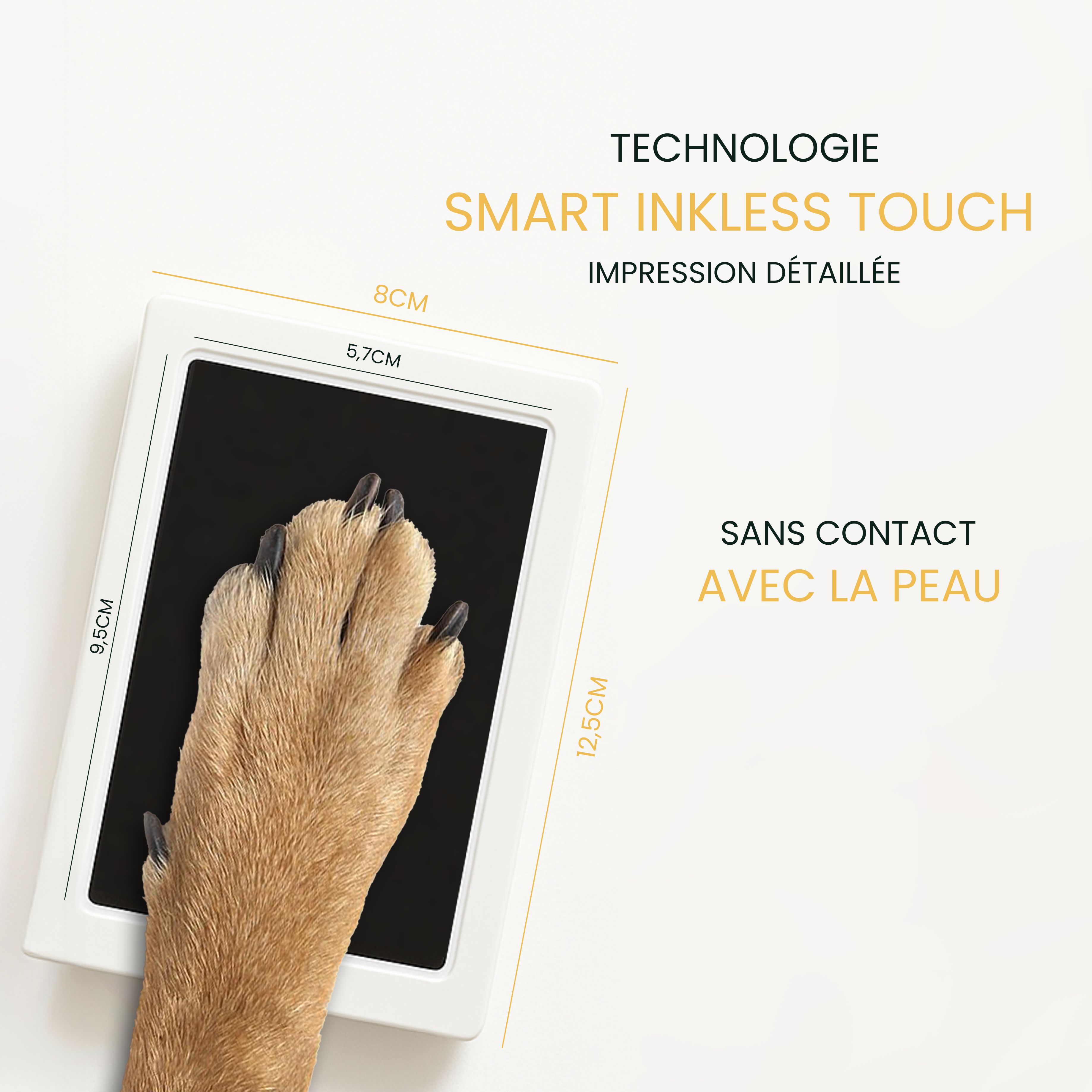 Chaque empreinte de patte, réalisée grâce au kit inclus, s’appose sur un encart dédié conservant un souvenir indélébile de votre compagnon. Une marque de son passage dans votre vie.
